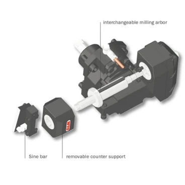 - Легкая смена режущего инструмента посредством съемного упорного центра и фрезерной оправки.