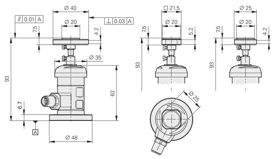 | Монтаж на столе станка | монтаж при помощи крепежных элементов (поставляются со щупом) монтаж при помощи монтажного цоколя (аксессуар) |